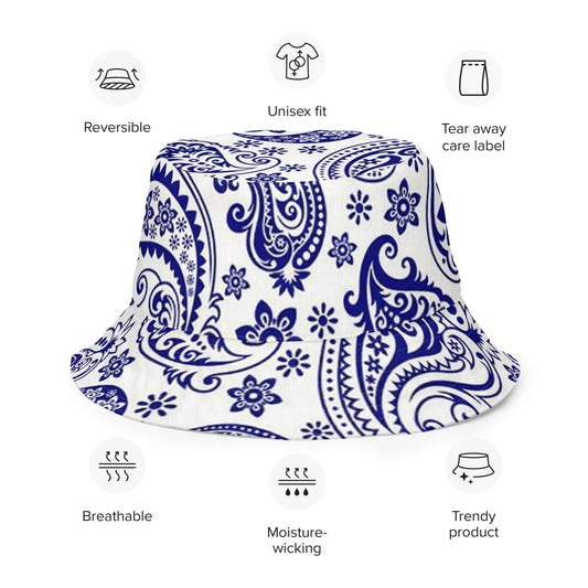 Reversible Blue Paisley bucket hat