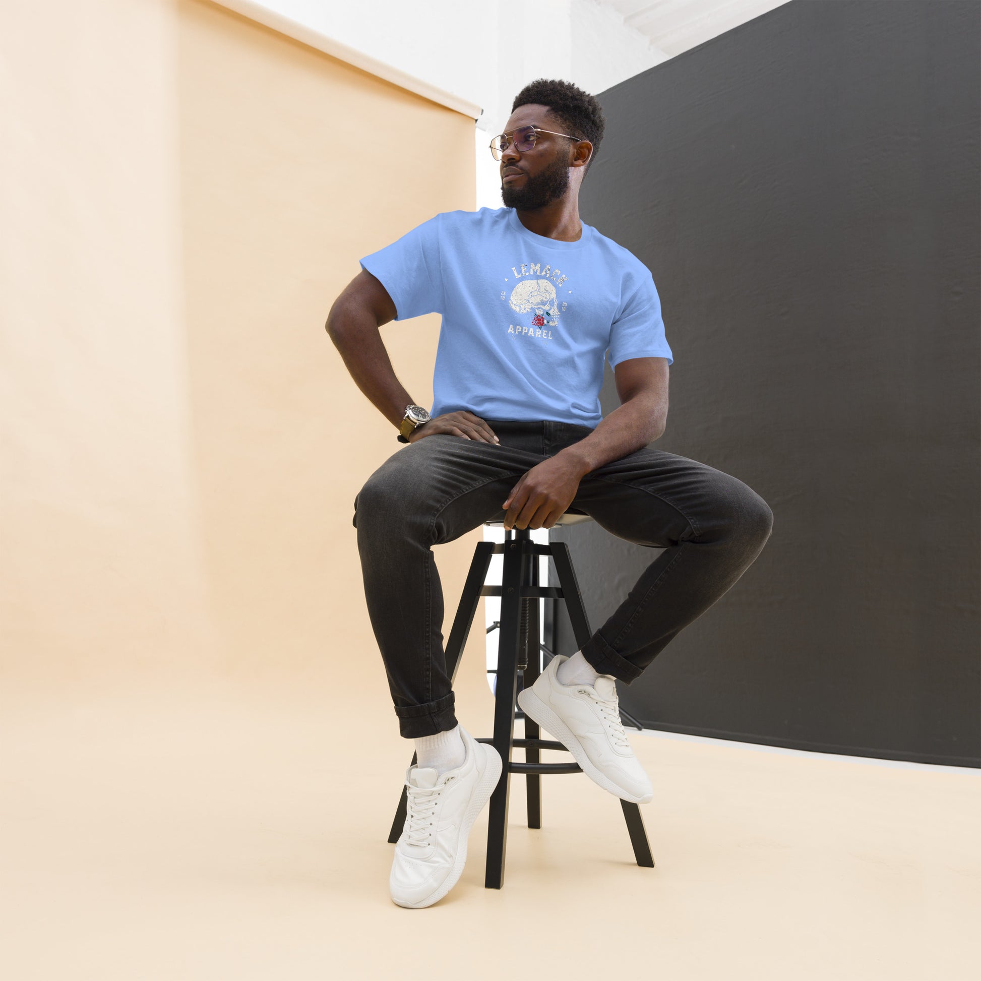 The 100% cotton men's classic tee will help you land a more structured look. It sits nicely, maintains sharp lines around the edges, and goes perfectly with layered streetwear outfits. Plus, it's extra trendy now!